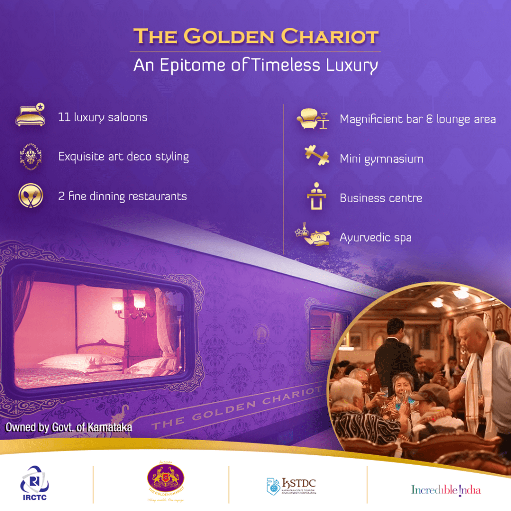 A perfect holiday destination, South India with its serene backwaters and golden beaches, truly has it all. And what are often more satisfying than undertaking a tour of all its hidden gems and pristine corners within the comfort of a chic luxury train just like the Golden Chariot. Well-equipped with all modern amenities, it’s been designed to cater to the guest’s every need and luxury . From fine dining restaurants to an immaculate bar & lounge, this train has everything a passenger could want. Experienced chefs prepare lip-smacking meals to make sure that your journey is nothing but a food carnival. the posh train also boasts of a gym where you’ll sweat it out and keep holiday weight cornered . And what’s more, the train also has provision for a wellness spa where you’ll relax and rejuvenate. Fascinated by the train already? Wait till you hear about the journeys. With three different South India tour packages available on The Golden Chariot, guests can make their pick from ‘The Pride of Karnataka’, ‘Jews of South’ and ‘Glimpses of Karnataka’ itineraries. While the primary two are longer journeys spanning 8 days and seven nights, the third one may be a short roller coaster of 4 days and three nights. But trust us that regardless of whichever journey you select , at the top of every , you’ll just be posing for more. By covering several unique places across South India, this train not only promotes South India tourism, but also gives enthusiastic travellers a chance to delve deep into the soul of South. Get a glimpse of its varied traditions, its beautiful culture, its authentic cuisine and in fact , the famous monuments. When most of the people believe visiting India, they instantly consider the valleys of kashmir, the greens of Himachal or the deserts of rajasthan. It’s a pity that South India’s exotic beauty remains within the towering shadow of the North. But The Golden Chariot Train with its world-class experience and thoughtfully curated itinerary, gives tourists worldwide access to sublimity great thing about South India. the simplest thanks to start a South India train tour is by hopping on to The Golden Chariot, a train made from dreams!